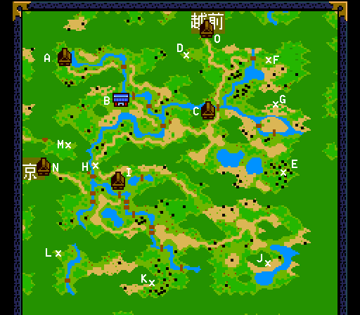 A 白川村 Shirakawa Village Get 形見の剣 Memento Sword after you save your mother B 高山村 Takayama Village 暗黒ラン Dark Orchid- red C 牛首村 Ushikubi Village Orphan: 法子 Noriko D 天狗の庵 Tengu Retreat Scroll: 若草 Wakakusa E 天狗の庵 Tengu Retreat Scroll: 雷光 Raikou F 炭焼小屋 Sumiyaka Hut G 両面窟 Ryoumen Cave Sub-boss: 死神兄弟のツノ王 Death Brothers King Tsuno- HP 120 H 関所 Barrier I 馬瀬村 Umase Village Item: 泥沼の恋文 Morass Loveletter J 天狗の庵 Tengu Retreat Scroll: give そば団子 Sobadango for 羽衣 Hagoromo K 縄文洞 Joumon Cave Sub-boss: 死神兄弟のツメ王 Death Brothers King Tsume- HP 162 L 天狗の庵 Tengu Retreat Scroll: 陽炎 Kagerou M 天狗の庵 Tengu Retreat Scroll: 野分 Nowake N 藤原峠 Fujiwara Pass O 立山峠 Tateyama Pass |