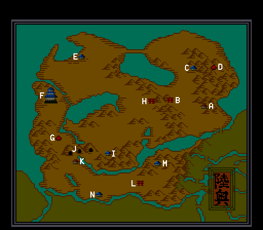 A 雲切の里8 Kumogiri Village 8 B ツルカメ神社 Tsurukame Shrine Rescue 白カメ White Turtle Scroll: 火天 Katen C 恐山 Mt. Osore D Rescue 白スズメ White Sparrow Scroll: 逃水 Nigemizu E とさ港 Port Tosa Item: かんざし Hairpin Get from おカヨ Okayo after going to Kanzashi Temple F 土崎町 Tsuchizaki Town - かんざし寺 Kanzashi Temple - 土崎城 Tsuchizaki Castle G Rescue 白カニ White Crab Scroll: 雲海 Unkai H ツルカメ神社 Tsurukame Shrine Rescue 白ツル White Crane Scroll: 清水 Kiyomizu I 月山の古寺 Old Temple of Mt. Tsuki - 寺 Temple Sub-boss: カーメンカーメン Khamen Khamen J 月山 Mt. Tsuki Scroll: 落葉 Rakuyou - 月山大門教会 Mt. Tsuki Daimon Church Boss: カーメンカーメン Khamen Khamen K 雲切の里9 Kumogiri Village 9 L さるた神社 Saruta Shrine Rescue 白サル White Monkey Scroll: 息吹 Ibuki Item: サル酒 Monkey Wine Get from a monkey M ざおう温泉 Zaou Hot Spring - 神社 Shrine Use Monkey Wine in front of mirror Boss: マントー Manto N もがみの渡し Mogami Crossing |