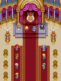 There are a number of different endings you can get. The best ending is the one in which Angelique becomes Queen. Another ending is if Rosalia becomes the Queen. There are also nine different “love love” endings with each Guardian (one might say these are the real best endings). Another way to end the game is to run out of time (you get 999 days) for the test and end in a draw. And there are still other endings. |