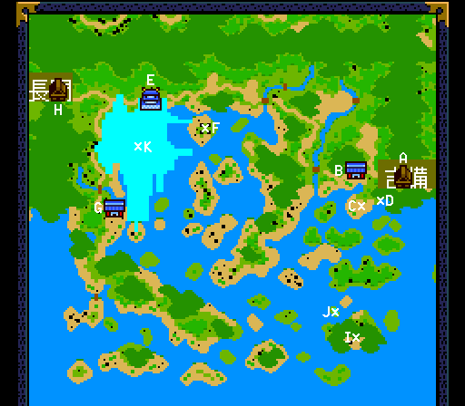A 福山村 Fukuyama Village B 尾道村 Onomichi Village C 亀山神社 Kameyama Shrine D 弁慶 Benkei Use 青葉の笛 Aoba Flute to awaken E 広島町 Hiroshima Town - 広島城 Hiroshima Castle F 天狗の庵 Tengu Retreat (hidden) Spell cost -1 G 岩国村 Iwakuni Village H 錦峠 Nishiki Pass I 村上洞 Murakami Cave J 船海宮 Senkaiguu Item: 鶴姫のカギ Princess Tsuru Key K 白銀城 Hakugin Castle Sub-boss: 百貫丸 Hyakkanmaru- HP 7324 Sword: 蛇光院松虫 Jakouin Matsumushi Use on Dark Orchid in Akiyoshi Cave Hint: Keep 骨の剣 Bone Sword for Kinu |