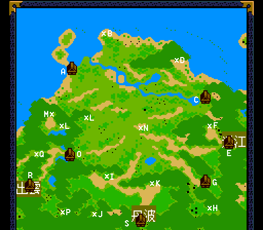 A 鳥取村 Tottori Village B 天狗の庵 Tengu Retreat Scroll: 宿木 Yadorigi C 豊岡村 Toyooka Village Put four urns on tombstones D 玄武洞 Genbu Cave Use 四神のカギ Four Gods Key Red Chest: 99 enemies in a row plus sub-boss 百鬼王 Hundred Devil King- HP 2500 Get 夜の沓 Night Boots, cast Aomatsu Item: 黒の骨壷 Black Urn E 夜久野峠 Yakuno Pass F 青竜洞 Seiryuu Cave Use 四神のカギ Four Gods Key Item: 青の骨壷 Blue Urn G 輪笠村 Wakasa Village Item: 四神のカギ Four Gods Key H 死野原洞窟 Shinohara Cave Leads to 丹波 Tamba - 天狗の庵 Tengu Retreat Scroll: 軍炎 Gun'en I 忍の里 Hidden Ninja Village J 天狗の庵 Tengu Retreat Scroll: 乱牛 Rangyuu K 朱雀洞 Suzaku Cave Use 四神のカギ Four Gods Key Item: 朱の骨壷 Red Urn L 白虎洞 Byakko Cave Use 四神のカギ Four Gods Key Item: 白の骨壷 White Urn M 天狗の庵 Tengu Retreat Scroll: 式神 Shikigami N 砂神城 Sajin Castle Item: 砂のカギ Sand Key Boss: マダム・バーバラ Madam Barbara- HP 2000 and デューク・ペペ Duke Pepe- HP 1800 Sword: 大霊院女彦 Daireiin Onnahiko O 鹿野村 Shikano Village P 天狗の庵 Tengu Retreat Scroll: 水泡 Suihou Q 馬鹿野城 Umashikano Castle Keep running away from the battles with Manto and he will lose his power Sub-boss: マントー Manto- HP 2100 Item: 抜火のカギ Bakka Key Sub-boss: スーパーマントー Super Manto- HP 2100 R 三徳峠 Santoku Pass S 戸倉峠 Tokura Pass |