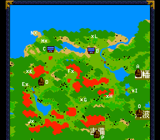 A 三徳峠 Santoku Pass B 松江村 Matsue Village Use シロの首輪 Shiro's Collar on grave to get Item: 送霊の鈴 Sourei Bell C 玉造村 Tamatsukuri Use 梅こけし Umekokeshi on door in tower D 舌震村 Shitabure Village E 天狗の庵 Tengu Retreat Scroll: 地獄 Jigoku F 荒神谷古墳 Koujindani Tomb Scroll: 追風 Oikaze Item: 梅こけし Umekokeshi Read tablet backwards and remove instances of ウ, メ, and コ G 忍の里 Hidden Ninja Village H 火彦山 Kahiko Mountain Item: 国引の弓綱 Kunihiki no Yumitsuna I 天狗の庵 Tengu Retreat Scroll: 万湯 Mantou J 縁切洞 Enkiri Cave Item: シロの首輪 Shiro's Collar K 須佐の風穴 Susa Vent L 黄泉平 Yomotsudaira Use 送霊の鈴 Sourei Bell to summon boat M 出雲大社 Izumo Grand Shrine Boss: 死神将軍 Death Shogun- HP 200 Boss: はまぐり姫 Princess Hamaguri- HP 1254 Boss: マダム・バーバラ Madam Barbara- HP 2000 Boss: 肉助 Nikusuke- HP 5000 Sub-boss: ゴズノ王 King Gozuno- HP 1900 and メズノ王 King Mezuno- HP 1700 N 天狗の庵 Tengu Retreat Scroll: 三角 Sankaku O 三室峠 Mimuro Pass P 田代峠 Tashiro Pass |