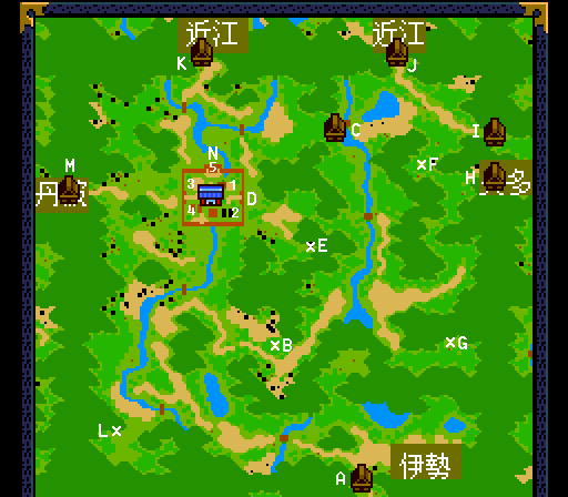 A 山城村 Yamashiro Village B 忍の里 Hidden Ninja Village C 信楽村 Shigaraki Village Receive 10,000両 to buy 百年人参 Hyakunenninjin in Kyouto give to elder to get Scroll: 残火 Nokoribi D 京都 Kyouto 1 貧民区 Slum District Meet ホテイ丸 Hoteimaru 2 住宅区 Residential District Man who will pay 10,000両 for 黄金虫の卵 Gold Insect Egg 3 寺社区 Temple and Shrine District 4 商店区 Shopping District Item: 富くじ三三 Lottery Ticket Mimi (33) Item: 富くじ三四 Lottery Ticket Miyo (34) Sleep at inn on left after cutting yellow Dark Orchid and before meeting Kinu to see a dream about her. 5 御所区 Imperial Palace District Talk to 桂姫 Princess Katsura Item: 宝庫のカギ Treasure Key, hidden in flowerbed next to bedroom Item: 入山許可書 Mountain Entrance Permit E 比えい山 Mt. Hiei Item: 純潔の鎖 Purity Chain F 忍の里 Hidden Ninja Village G 天狗の庵 Tengu Retreat Scroll: 雷電 Raiden H 藤原峠 Fujiwara Pass I 伊吹峠 Ibuki Pass J 逢坂峠 Ousaka Pass K 鞍馬峠 Kurama Pass L 大草洞 Ookusa Cave Leads to Tengu Retreat in Tamba M 保津峠 Hodzu Pass N 花の御所 Flower Imperial Palace Sub-boss: 破王ラーガ Haou Raga- HP 16507 and 破王ラージャ Haou Raja- HP 18223 Sub-boss: 阿鼻の獅子 Abi Lion- HP 17650 and 叫喚の獅子 Kyoukan Lion- HP 16845 Boss: デデベ Dedebe- HP 14500 Last-boss: ヨミ Yomi- HP 36000 Last-boss: ヨミ Yomi- HP 20000 |
